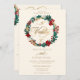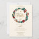 Folha de ouro quente e elegante, tudo em um convite de casamento para caligrafia com rsvp, acomodações, detalhes e mais informações. Com um belo roteiro de caligrafia em marfim bege editável com um inverno de Natal verde, vermelho e bege, coroa floral
