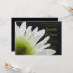 Anuncie que está noiva de se casar e convide convidados para comemorar com a bonito margarida branca do convite à Festa de noivado Negra. Este elegante convite para festa de noivado botânica personalizado apresenta uma fotografia floral de perto de um florescimento de flor margarida branca com um centro verde sobre fundo preto.