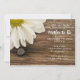 Convide convidados para a sua próxima celebração casual, mas clássica, com a margarida branca russa e o convite para Chás de fraldas de madeira do Barn. Este encantador chá de fraldas personalizado de um rancho apresenta uma fotografia floral de um florescimento branco de margarida com um centro amarelo sobre um fundo de madeira de casarão castanho.