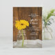Convide os convidados para celebrar a noiva e o noivo recém-casados na manhã após a cerimônia de casamento com o convite relaxado e rústico Yellow Daisy in Mason Jar Country Post Wedding Brunch. Este convite casual, porém sofisticado, para o café da manhã ou almoço pós-casamento em estilo rancho personalizado apresenta uma fotografia floral encantadora de um jarro de vidro cheio de uma flor de margarida amarela e um fundo de madeira de celeiro marrom desgastado. Inspiração ou ideia perfeita para um evento de celebração de festa de casamento informal. Disponível como convite impresso para envio ou como download digital para compartilhamento fácil online.
