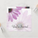 Uma margarida subtil no fundo e um perfurador da cor com a margarida roxa no canto fazem estes convite/anúncio perfeitos para seu casamento, uma festa de aniversário, o aniversário, o noivado, ou a toda a outra ocasião que você puder pensar de. Bonito, elegante, simples, este é o convite para você.
