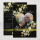 Margaridas douradas com uma moldura de foto em forma de coração. Personalize como um convite de aniversário de casamento, salve a data e muito mais.