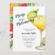 Margs super coloridos antes do Chá de panela Matrimony mostra uma enorme margarita de aquarela na frente e granjas nas costas.