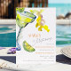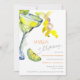 O convite de fim de semana da solteira mostra uma vibrante cor d'água, vidro margarita e limão, à esquerda, capturando perfeitamente o tema "Margs & Matrimony". O design adota um estilo minimalista, com sotaques coloridos que equilibram diversão e elegância, refletindo o tom comemorativo do evento.