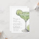 Margs & Matrimony Chá de panela. Celebre a noiva por estar com essa design divertida e festiva, perfeita para um chá de panela com tema margarita ou fiesta. A frente apresenta um grande vidro margarita verde-aquoso cercado por fatias de limão zistido no lado direito, acrescentando um toque vibrante e lúdico. A paleta de cores é fresca e viva, com tons de verde e branco criando um olhar moderno e convidativo. O texto é apresentado em uma mistura de elegante script manuscrito e fontes serif limpas, alcançando o perfeito equilíbrio entre casual e chic. As costas incluem um adorável pequeno detalhe de limão para um acabamento coeso e charmoso. Ideal para um chá de panela hospedado em um restaurante mexicano, uma casa com um bar de taco, ou qualquer celebração inspirada em festa. Totalmente personalizável, você pode ajustar o texto, as fontes e as cores ao estilo do evento. Disponível como um convite impresso ou um arquivo digital baixável para e-mail ou impressão local, este design é uma maneira alegre de honrar a noiva com um brinde a "Margs & Matrimony"!