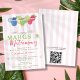 Margs & Matrimony Margarita Trio Chá de panela com Código QR - Um pré-disquete, tendências e chá de panela vibrante. Apresentando uma ilustração margarita trio, margaritas clássicas, azuis e framboesas sobre fundo branco e rosa-pincel. Com uma combinação de fontes de caligrafia retrorinspiradas e guiadas em verde limão vibrante e cor-de-rosa fuchsia. Personalize este modelo de chá de panela editável com seus próprios detalhes de evento. Edite o Código QR na parte traseira do convite com o site do registro de casamento, fazer que seja fácil para seus convidados visualizá-lo. Disponível no impressão e no download digital instantâneo que você pode enviar através de texto, email ou mídia social.