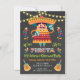 Super fofinhos convites de festas de aposentadoria Mariachi Mexcian Fiesta com um mariachi segurando maracas e vestindo um sombrero. Destaques coloridos, guitarras, fontes e luzes cintilantes divertidos em um fundo de quadro negro. Precisa de ajuda com o esquema, basta enviar-me um e-mail para tkatz@me.com