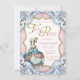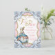 Convite de aniversário do Tea Party com Marie Antonieta em um bonito damasco cor-de-rosa e fundo azul giratório. Este convite de festas bonito, cor-de-rosa e ouro, é facilmente personalizado para o seu evento, simplesmente adicionando os seus detalhes no estilo de letra e na cor da sua escolha. Você pode remover as espirais azuis. Este é um design impresso sem brilho real.