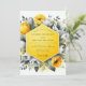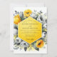 A stunning display of modern elegance for your special day. This artistic design features vibrant marigold tulips and poppies bursting forth from a sophisticated monochrome bouquet of grey anemones and leaves. The painterly watercolor style creates a chic and dramatic contrast, perfect for a contemporary union.