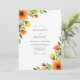 Vibrant watercolor wildflowers in shades of marigold and yellow dance across a clean white backdrop. This hand-painted design features delicate poppies and budding blossoms accented by lush green foliage. The aesthetic is bright and airy, perfect for a sunny outdoor ceremony or a joyful warm-weather event.