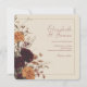 Convite de casamento romântico e elegante para feiticeiros rústicos, com flores marigadas com uma fronteira vintage. Cor de laranja quente, burgundy, tons de ouro e folhas de outono são pares de folhas com bege para um cheio de design botânico de charme boêmico. Perfeito para primavera, verão, ou celebrações de outono com terracota e sotaques laranja queimados.