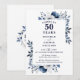 Este elegante convite de aniversário de bodas de 50 anos azul marinho pode ser personalizado com suas informações em tipografia moderna. Criado por Thisisnotme©