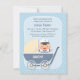 Este convite tem uma rotação única para o chá de fraldas náutico clássico. Ele tem um pequeno marinheiro com um capitão de logo de âncora sentado alegremente num carrinho. Padrão de bolinhas azuis de Pastel para fundo. Personalize facilmente com os detalhes da festa.