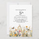 Um belo convite de 5 de casamento, estilo country, com flores silvestres, pássaros e borboletas coloridas.