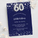 Um convite moderno, na moda e glamouroso para uma 60ª festa de aniversário. Um fundo azul marinho, decorado com estrelas de falso prata. Personalize e adicione seu nome e detalhes da festa. O número 60 é escrito com uma fonte no estilo do balão.