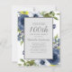 Azul, amarelo e branco-marinho elegante floral com folhas verdes no 100º convite para comemoração da festa de aniversário. A letra é uma bela letra de escrita de caligrafia. Entre em contato conosco para obter ajuda com a personalização ou para solicitar produtos correspondentes.