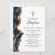 Convites Marinho Azul Agate Dourado Batismo Moderno Elegant