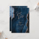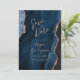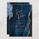 Este elegante casamento salva a data mostra uma imagem de fundo da marinho azul de aquarela agada, aparada com falso rosa dourado. O texto personalizável combina a letra rosa rosa moderna, a letra copperplate e a letra itálico. O verso apresenta um design de agate rosa e azul-marinho de coordenação.