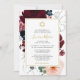 Este elegante convite para o Bat Mitzvah floral com aquarela apresenta flores marinho azuis, burgundy e cor-de-rosa pincelada. Há sotaques de folha de ouro falsa que são perfeitos para um evento formal. Designs são ilustrações/gráficos impressos planos - NÃO FOIL DE OURO REAL
