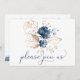 Coloque o tom do moderno com um toque de elegância com estas flores azuis marinhos e azuis escamoteadas com convites para casamento de rosas dourados. Uma mistura de fontes de caligrafia de ornamentado e texto moderno faz deste convite de casamento um convite certo para agradar aos seus convidados antes mesmo de chegarem para o seu grande dia.