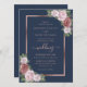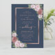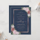 Marinho personalizado elegante, convite floral para casamento azul, blush e rosa dourado, com rosas cor-de-rosa embrulhando todos os detalhes importantes do casamento.