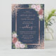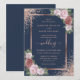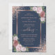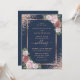 Marinho azul, blush e ouro floral elegante, convite de casamento floral com rosas cor-de-rosa e confetti rosa de ouro, reunindo todos os detalhes importantes do casamento.