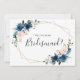 Belo romântico véu floral, você será meu cartão de convite para apresentação de propostas de damas de honra com gráficos florais pintados manualmente / rosas em tons ricos de azul Marinho azul-azul-azul-roxa/cor-de-rosa/pêssego e charmoso estilo de letra de mão com uma estrutura geométrica dourada. Entre em contato comigo para obter ajuda sobre a personalização ou se você precisar de outro produto com este design.