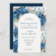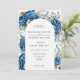 Marinho Azul Blush Cor-de-rosa Dusta Floral Arch Convite. Este design apresenta um arco de marinho de aquarela azul pincelado cor-de-água florais cor-de-rosa. Personalize com seus detalhes de casamento.