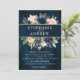 O belo convite de casamento floral boho apresenta gráficos florais pintados manualmente com aquarela/rosas em tons ricos de azul-marinho e cor-de-rosa-pincel/pêssego e uma fonte encantadora de estilo de letreiros manuais. Há dois fundos para o lado de trás do convite. Marinho azul e faixa branca rosa um. você pode alterá-la selecionando o link "personalizar mais". Entre em contato comigo para obter ajuda sobre a personalização ou se você precisar de outro produto com este design.