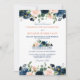O belo convite de casamento floral boho apresenta gráficos florais pintados manualmente com aquarela/rosas em tons ricos de azul-marinho e cor-de-rosa-pincel/pêssego e uma fonte encantadora de estilo de letreiros manuais. Há dois fundos para o lado de trás do convite. Marinho azul e faixa branca rosa um. você pode alterá-la selecionando o link "personalizar mais". Entre em contato comigo para obter ajuda sobre a personalização ou se você precisar de outro produto com este design.