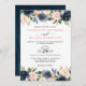 O belo convite de casamento floral boho apresenta gráficos florais pintados manualmente com aquarela/rosas em tons ricos de azul-marinho e cor-de-rosa-pincel/pêssego e uma fonte encantadora de estilo de letreiros manuais. Há dois fundos para o lado de trás do convite. Marinho azul e faixa branca rosa um. você pode alterá-la selecionando o link "personalizar mais". Entre em contato comigo para obter ajuda sobre a personalização ou se você precisar de outro produto com este design.