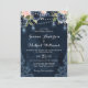 Bonito convite de casamento floral boho apresenta gráficos florais de cor d'água pintados manualmente / rosas em tons ricos de azul marinho e rosa pincel / cor de pêssego e String com jarros de pedras e rendas azul marinho. Entre em contato comigo para obter ajuda sobre a personalização ou se você precisar de outro produto com este design.
