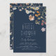 Convites Marinho Azul Boho Chá de panela de flor selvagem E