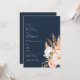 Marinho azul e tema floral convite para o casamento que inclui sotaque de flor de cor aquática boho de rosas de pedras e grama pampas. Simples de personalizar com os detalhes do seu casamento para seus convidados em tipografia elegante e minimalista.
