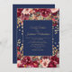 Um convite para casamento azul de marinho elegante com burgundy e cor-de-água rosa pincelada floral e cintilação de confete dourado. Entre em contato comigo para obter assistência com a personalização ou para solicitar outros produtos Zazzle correspondentes ou coordenadores para sua celebração.