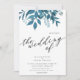 Esta design de casamento rústica de inverno apresenta galhos azuis esmeraldas, folhas e galhos com a trendy black script. Este convite de casamento é feito em matizes de casamento de Trendy de 2022. Aproveite!