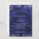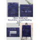 Um fundo azul marinho, decorado com falso brilho prateado, faíscas. A cor azul é irregular. Personalize e adicione seus nomes e detalhes. Adicione a url do site do casamento para detalhes do casamento e RSVP.