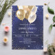 Um convite moderno, na moda e glamouroso para uma festa de aniversário 18 (ou qualquer idade). Um fundo azul marinho, decorado com faíscas douradas azuis e falsas e balões ouros. A cor azul é irregular. Personalize e adicione seu nome e detalhes da festa.
