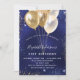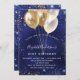 Um convite moderno, na moda e glamouroso para uma festa de aniversário de 21 ruas (ou qualquer idade). Um fundo azul marinho, decorado com faíscas douradas azuis e falsas e balões ouros. A cor azul é irregular. Personalize e adicione seu nome e detalhes da festa.