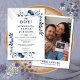 Este elegante convite para chás de fraldas florais azuis pode ser personalizado com suas informações na tipografia moderna e uma foto especial no verso. Projetado por Thisnotme©