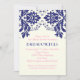 Elegante damask motif marinho azul, rosa, chá de panela de casamento de marfim. Um design de casamento moderno, mas clássico, com um talento retrô. Um delicado design de casamento com vintage sente-o, perfeito para um casamento de primavera ou verão contemporâneo ou tradicional.