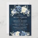 Convite para o casamento floral azul empoeirado, com buquê elegante de azul marinho, azul real, branco, ouro, marfim de champanhe, rosa de cor esbranquiçada, botões de flor ranunculus e folhas de eucalipto verde-sábio e buquê de cor d'água elegante. Entre em contato comigo para obter ajuda sobre a personalização ou se você precisar de outro produto com este design.