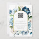 Marinho Azul Chic Todos em 1 Orçamento Código QR Convite de Casamento. Mão pintada a aquarela convite floral de casamento contendo flores em tons de azul empoeirado e azul marinho com quadro de ouro, roteiro de caligrafia moderno e código QR com detalhes no verso. Linda e elegante floral de aquarela tudo em um convite de casamento perfeito para casamentos rústicos e casamentos de verão ao ar livre. Você pode personalizar o texto, o estilo da fonte, a cor e o tamanho em frente e atrás do cartão. Por favor, sinta-se à vontade para contactar-me para obter os itens correspondentes.