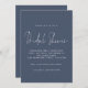 Chá de panela Azul Marinho Dusty de Script Moderno. Design minimalista tipográfico com cabeçalho de ocasião em um roteiro informal de conjunto de na moda. Personalize facilmente o resto do texto para seus próprios detalhes. As cores do texto e do plano de fundo podem ser alteradas para qualquer uma de suas opções por meio da opção personalizar mais.