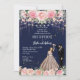 marinho brilhante Dourado flores cor-de-rosa azuis recepção de casamento convite modelo de transferência instantânea.