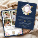 Convites Marinho Azul de Crest com Código QR Floral Roxo