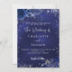 Um fundo azul marinho, decorado com falso brilho prateado, faíscas e flores azuis. A cor azul é irregular. Personalize e adicione seus nomes e detalhes.