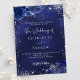 Um fundo azul marinho, decorado com falso brilho prateado, faíscas e flores azuis. A cor azul é irregular. Personalize e adicione seus nomes e detalhes.