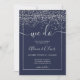 Moderno confete de folha prateada, autópsias de fotos de script de quadro geométrico casamento, adicione 4 de sua foto de casal favorita, um convite de casamento simples, minimalista e chic, adicione suas iniciais no verso. A cor azul do marinho é totalmente editável.