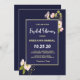 Convites Marinho Azul de Quadro Dourado Floral Blush Chá de